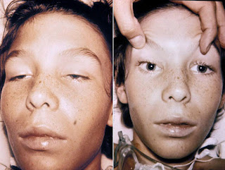 Botulism disrupts both voluntary muscle control and the autonomic nervous system. Symptoms of poisoning include double vision, eyelid drooping, loss of facial expression, inability to swallow, constipation, nausea, and difficulty talking. Weakness spreads throughout the body, making it difficult to use the limbs. Eventually, severe botulism can result in paralysis of respiratory muscles, leading to respiratory arrest, coma, and death if untreated. Treatment includes immediate removal of food-borne contamination by inducing vomiting, followed by treatment with a horse-derived antitoxin that functions to block the action of circulating botulinum.