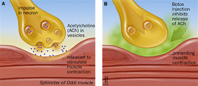 Back in March, I blogged about the neurochemistry of Botox (click here to read). Botox is the trade name for botulinum toxin, a powerful neurotoxin which, in very small medical doses, functions to paralyze the muscles of the face (or wherever it's injected). On the other hand, severe botulism poisoning, which occurs primarily through food contamination, can result in paralysis of respiratory muscles, leading to respiratory arrest, coma, or death if untreated.