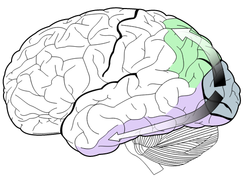 | Dorsal (green) and ventral (purple) streams. Wikimedia Commons |