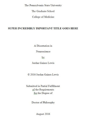 My first task — and I mean TASK! — was getting the formatting down. I basically have the entire skeleton for the document with proper font, headings, line spacing, bolding, italics, page numbering etc. etc. etc. in all the right places. That took a solid two hours one afternoon (mostly because creating sections for page numbers in Word always turns out to be a minor nightmare, no matter how many times I've done it). I've been referring to the dissertation style guide constantly because I don't want to submit this dang thing for review and be told I did something completely wrong. Best get it down now, right? The title page is rather snazzy.